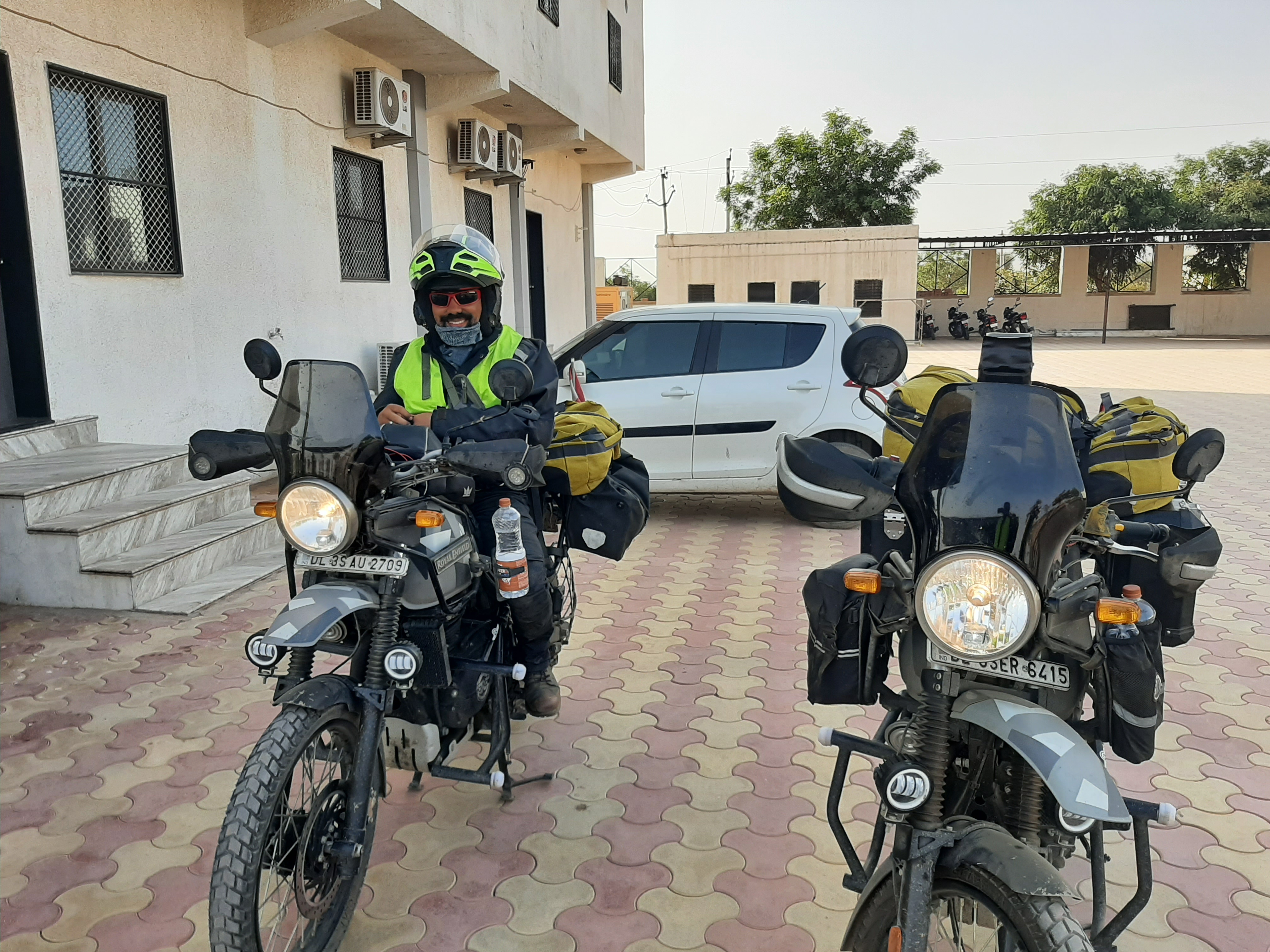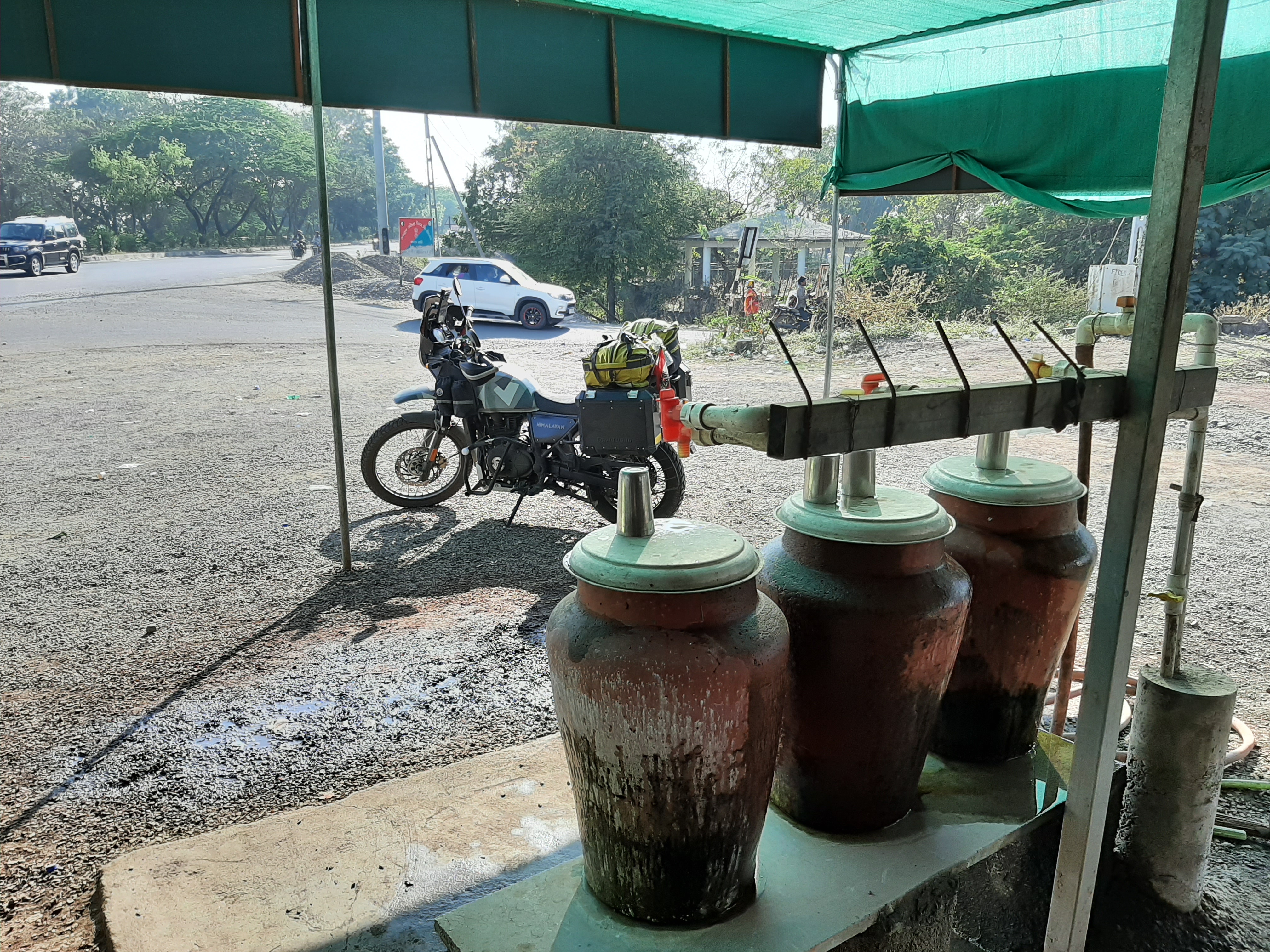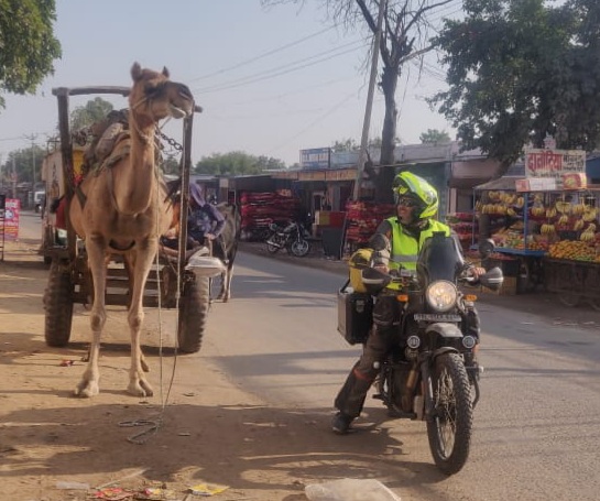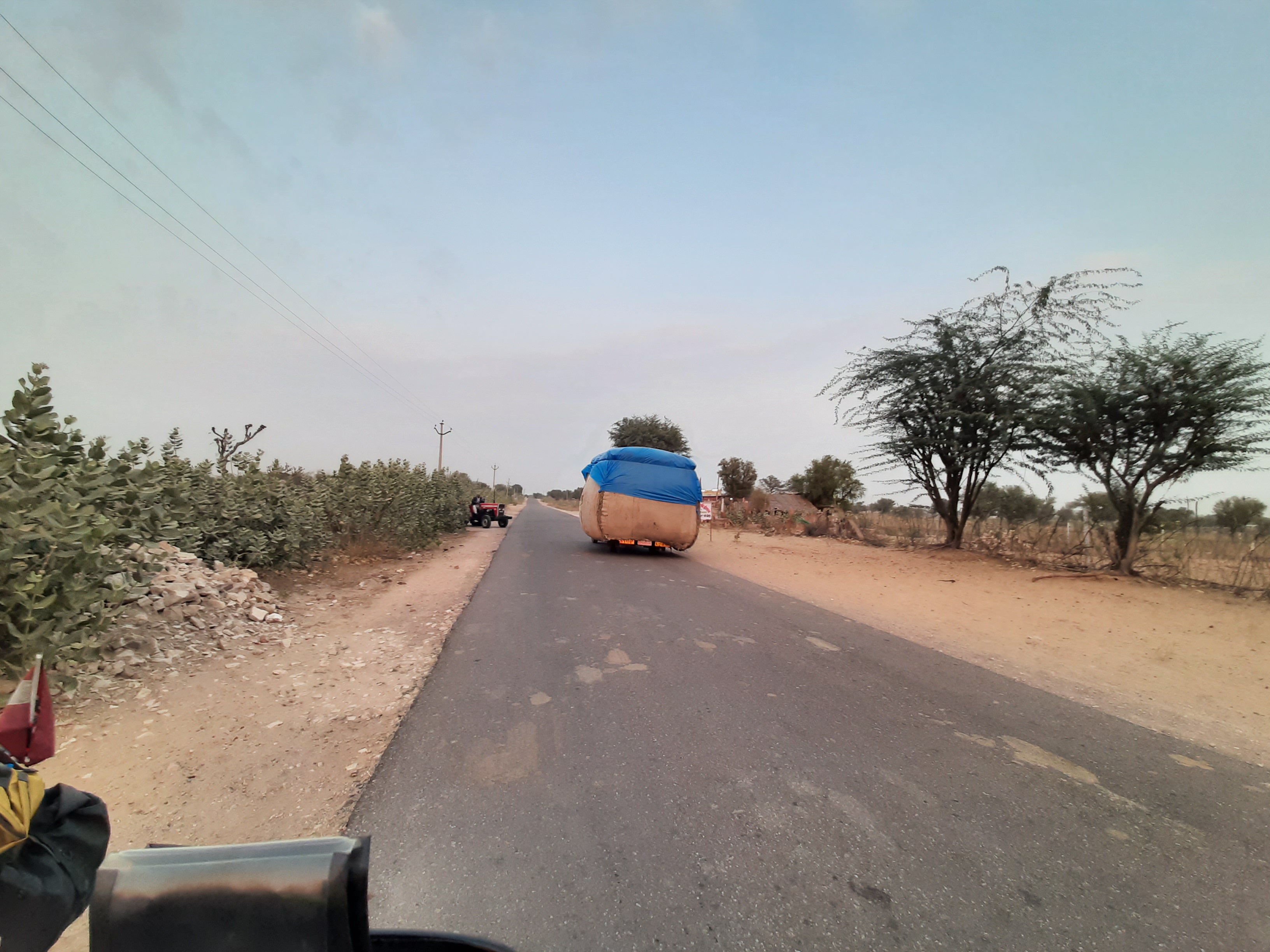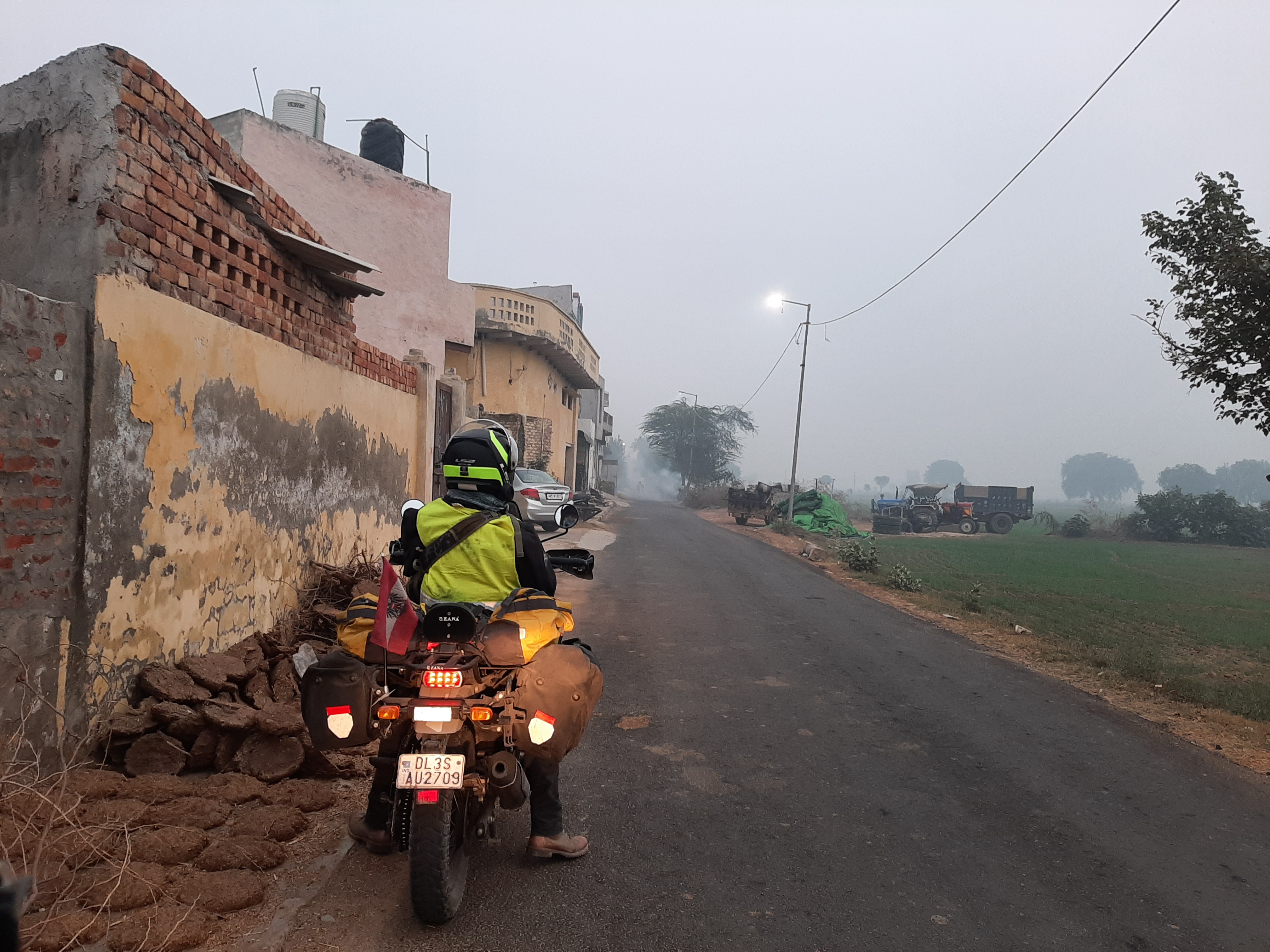 und die ersten 440 Km hinter uns zu bringen und nach Sri Ganganagar zu kommen. Da im Zuge der Polizeikontrollen immer wieder nach den Abgaswerten gefragt wird, man muss eine entsprechende Bestätigung mitführen, die man bei den Tankstellen bekommt,