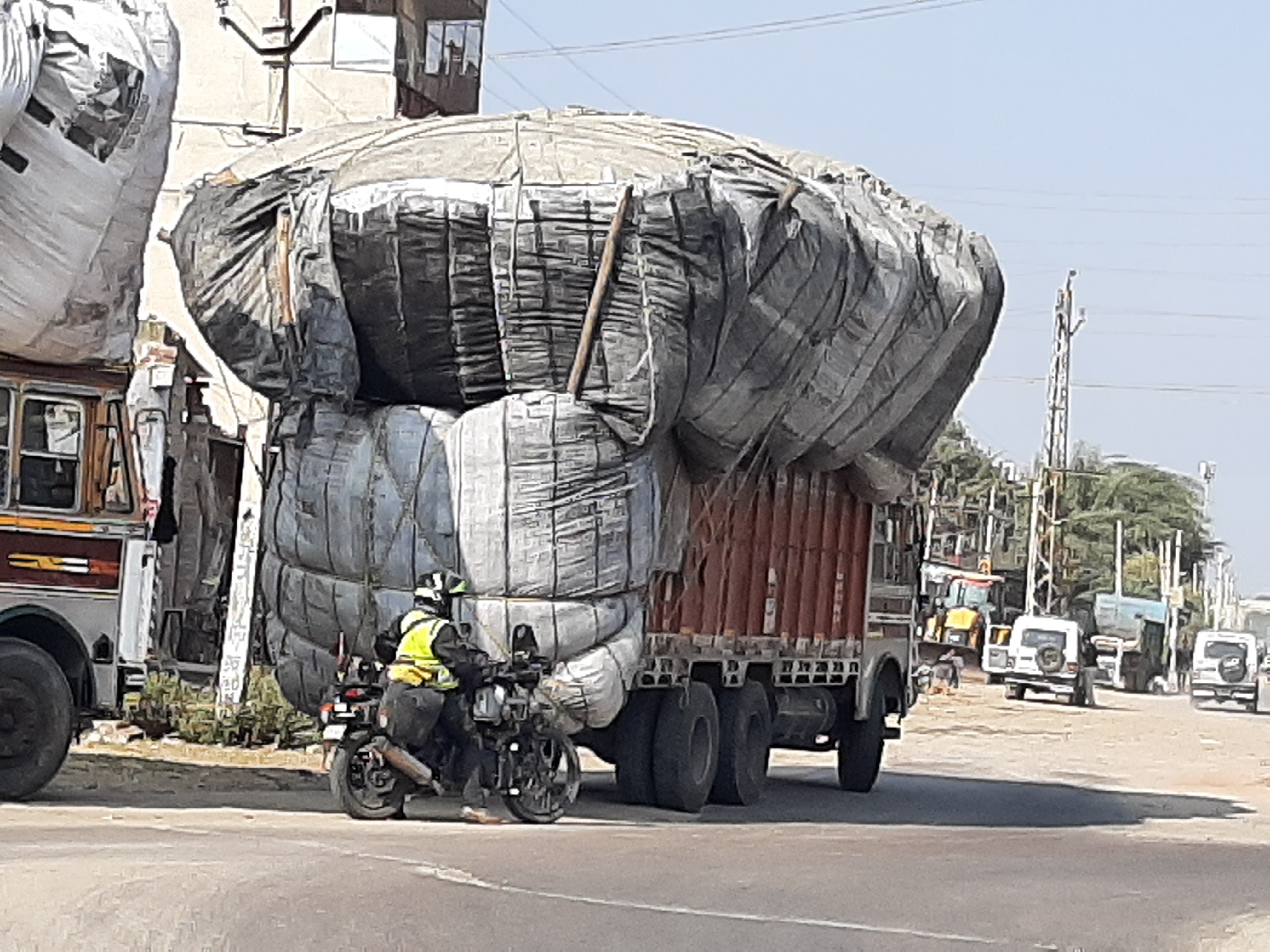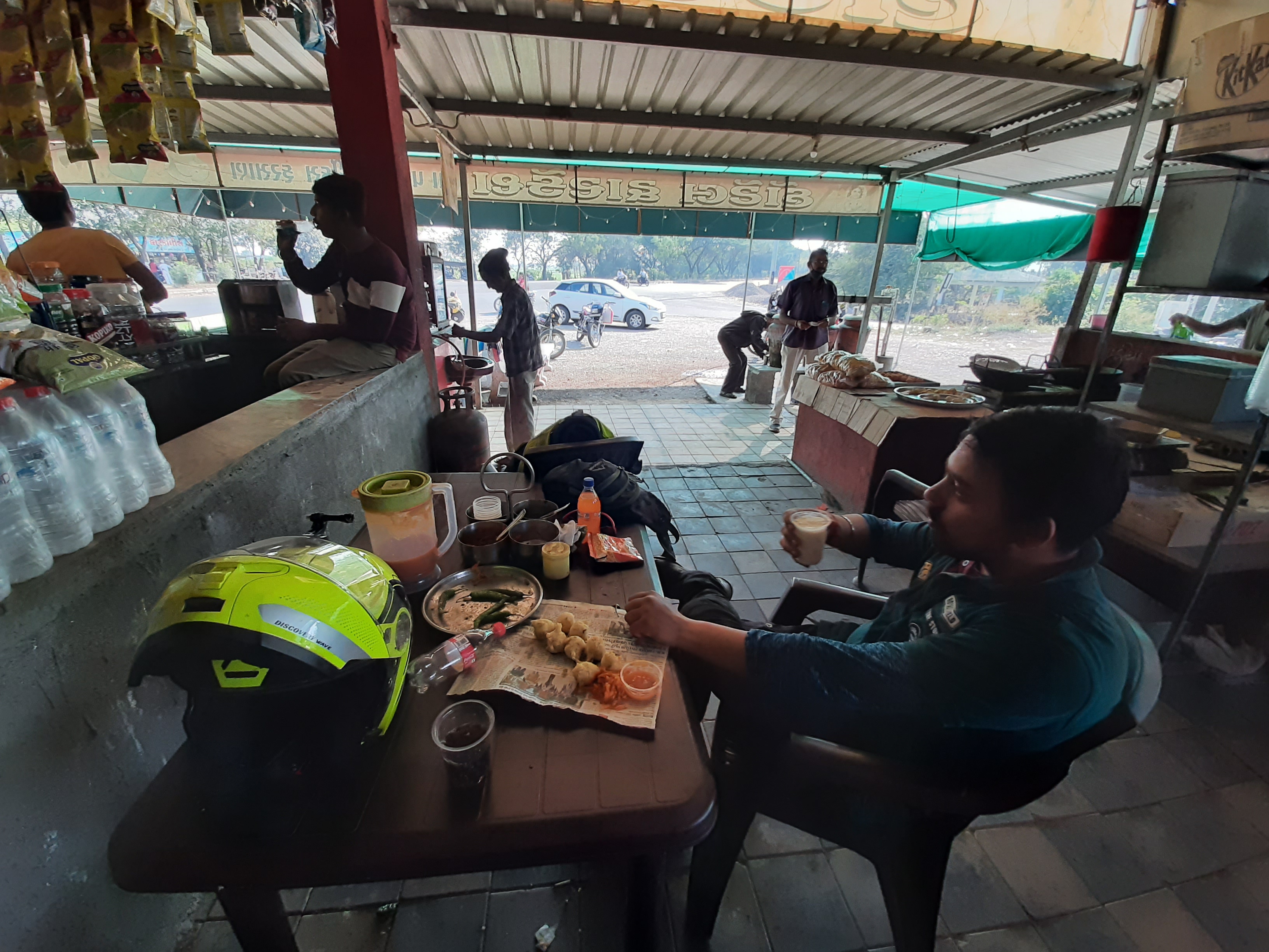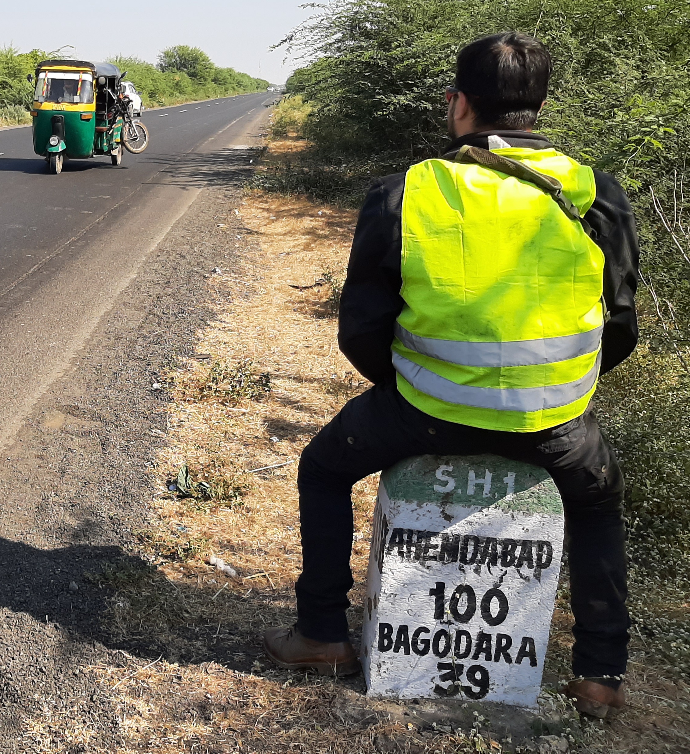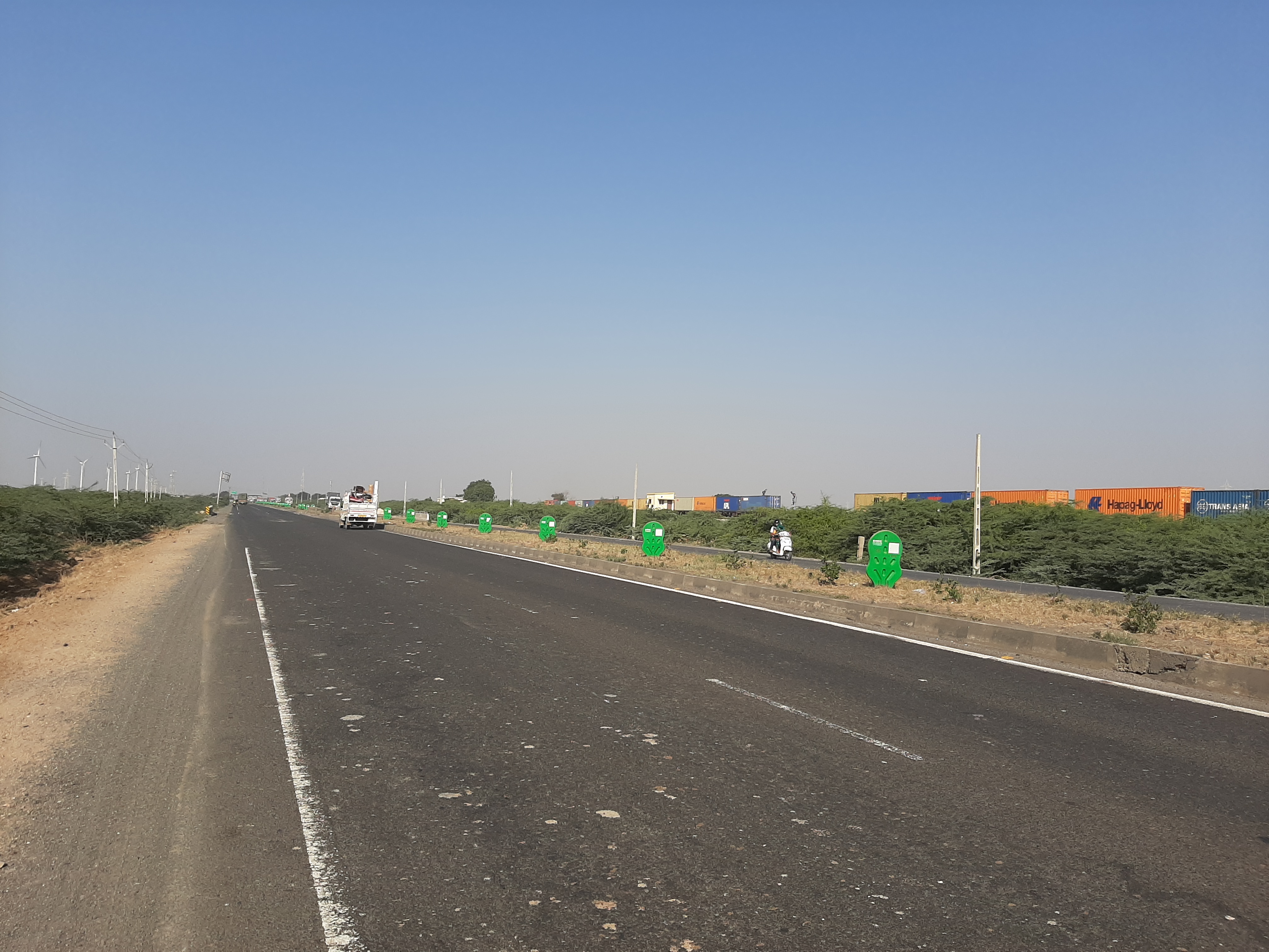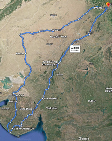 und die ersten 440 Km hinter uns zu bringen und nach Sri Ganganagar zu kommen. Da im Zuge der Polizeikontrollen immer wieder nach den Abgaswerten gefragt wird, man muss eine entsprechende Bestätigung mitführen, die man bei den Tankstellen bekommt,